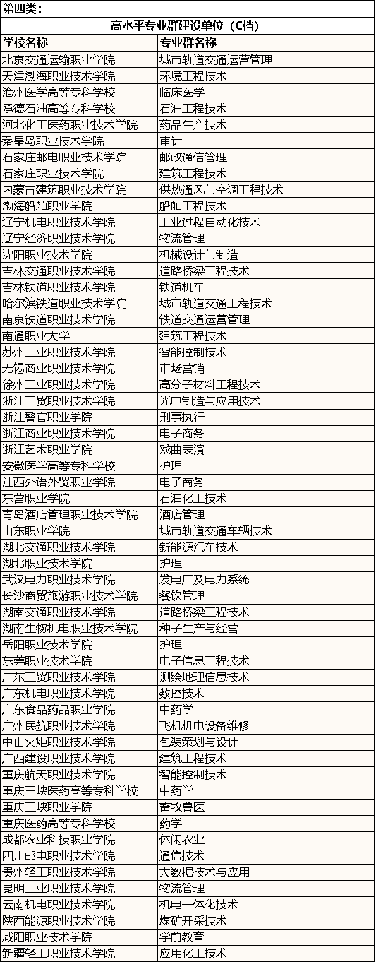 中国特色高水平高职学校和专业建设计划建设单位名单