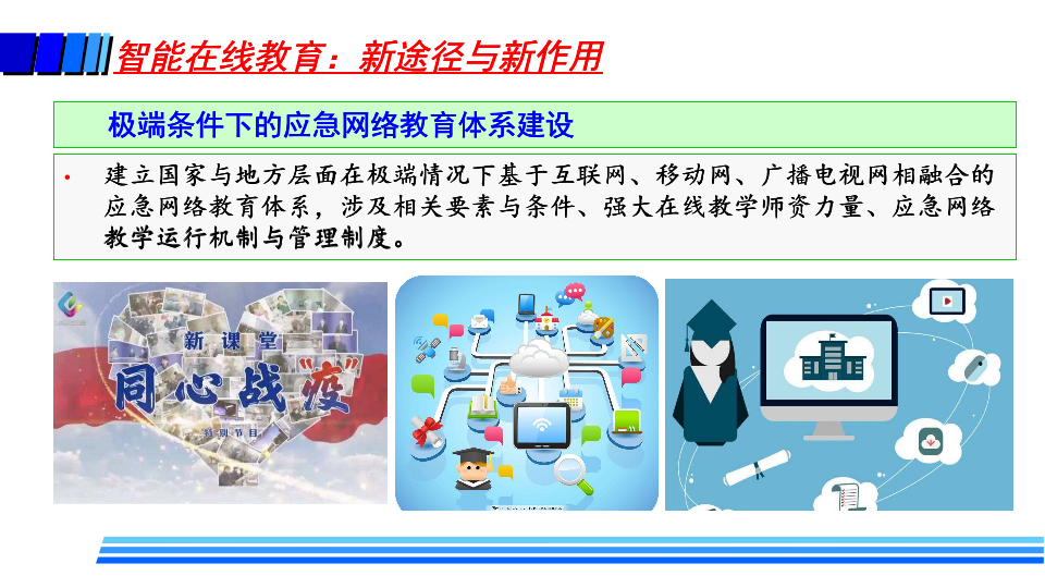 徐晓飞表示,疫情后新常态下教育将是“线上线下 + 智能 + 教育”的新形态,随着未来智能在线教育在各个层次教育的广泛深入应用,必将带来教学模式、教学方法、学习方式、教学管理、教师职责、教学评价、教学服务提供甚至是学历认证方式等全方位的改变,呈现新特征和新趋势。